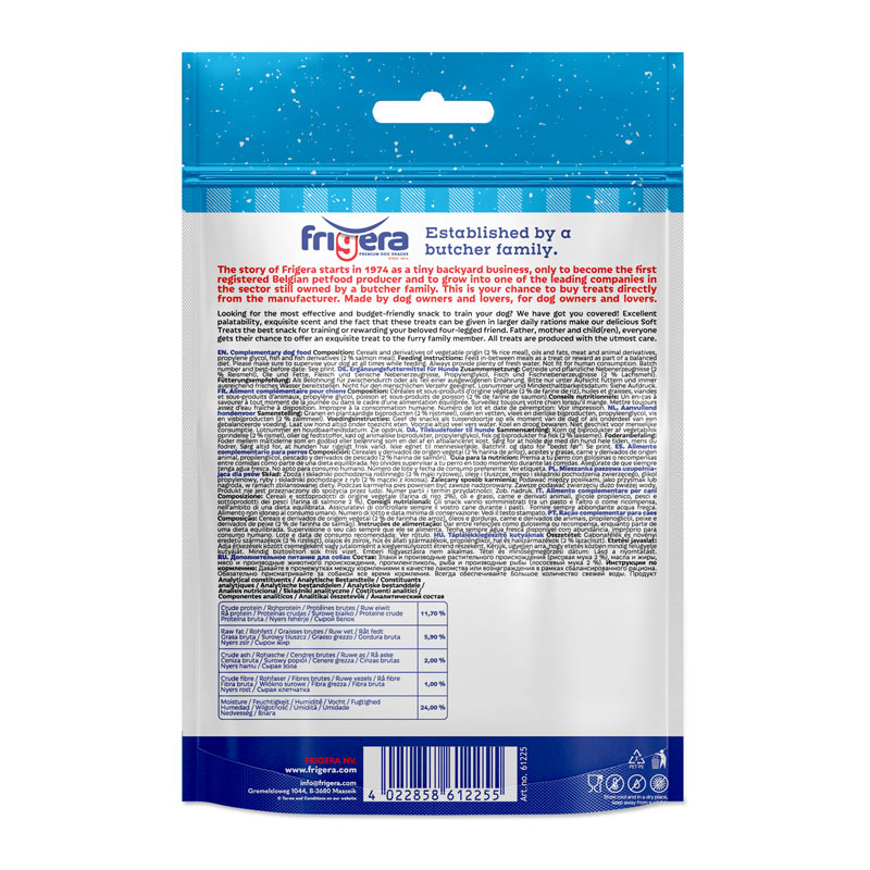 Nuestros Soft Treats combinan un sabor irresistible, una textura muy apetecible y un aroma delicioso que encanta a los perros. Además, pueden ofrecerse en cantidades más generosas a lo largo del día, lo que los convierte en el snack ideal tanto para el adiestramiento como para recompensar a tu mejor amigo de cuatro patas.